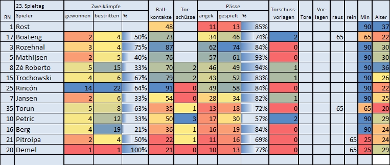 Jansen ist hinten links verschenkt. Kein Torschuß, keine Torschußvorlage. Lob für Rozehnal, wirkte sehr stabil.