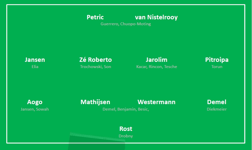 Ich denke Petric/Guerrero und auch Choupo passen zu van Nistelrooy. van Nistelrooy sorgt für Unruhe und die Lücke kann der andere Stürmer nutzen. Im 442 brauchen sich eigentlich nur abwechseln. Das kann funktionieren meiner Meinung nach.