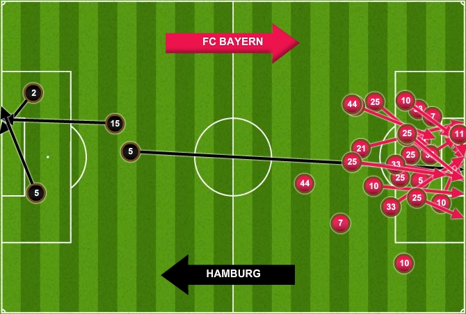 Beim zweinull greift Diekmeier Ribery nicht ansatzweise an und die Flanke von Müller ist nach einem Einwurf. Keiner der umstehenden Verteidiger greift an, sie bleiben alle stehen. Nicht Aogo, nicht Westermann. Jansen (als defensive Absicherung im Mittelfeld aufgestellt) steht näher zur Mittellinie als Son. Da wurde die Seite nicht dicht gemacht.