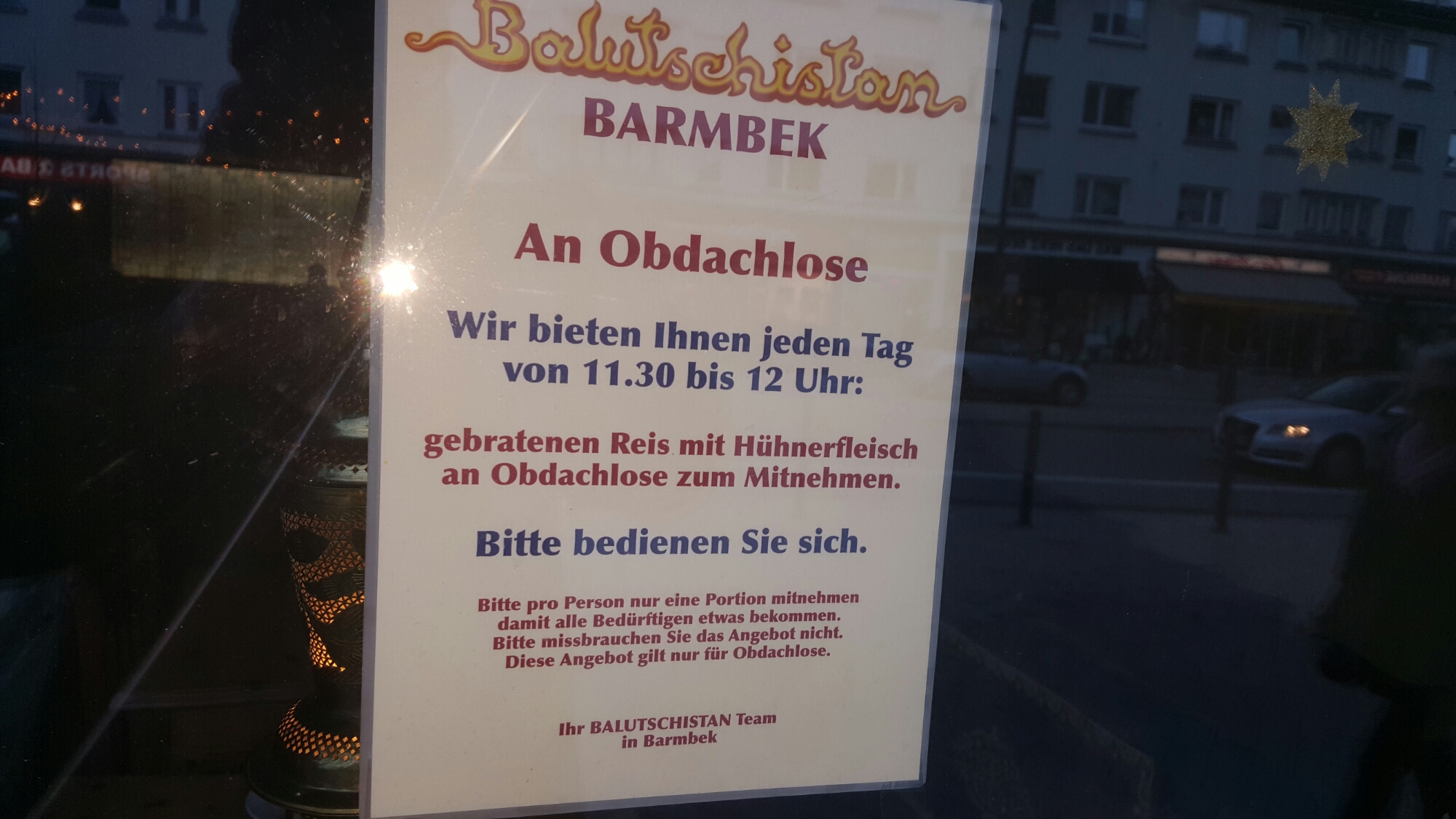 Da ich krank auch essen will, war ich kurz draußen und fand dann diese Nachricht.