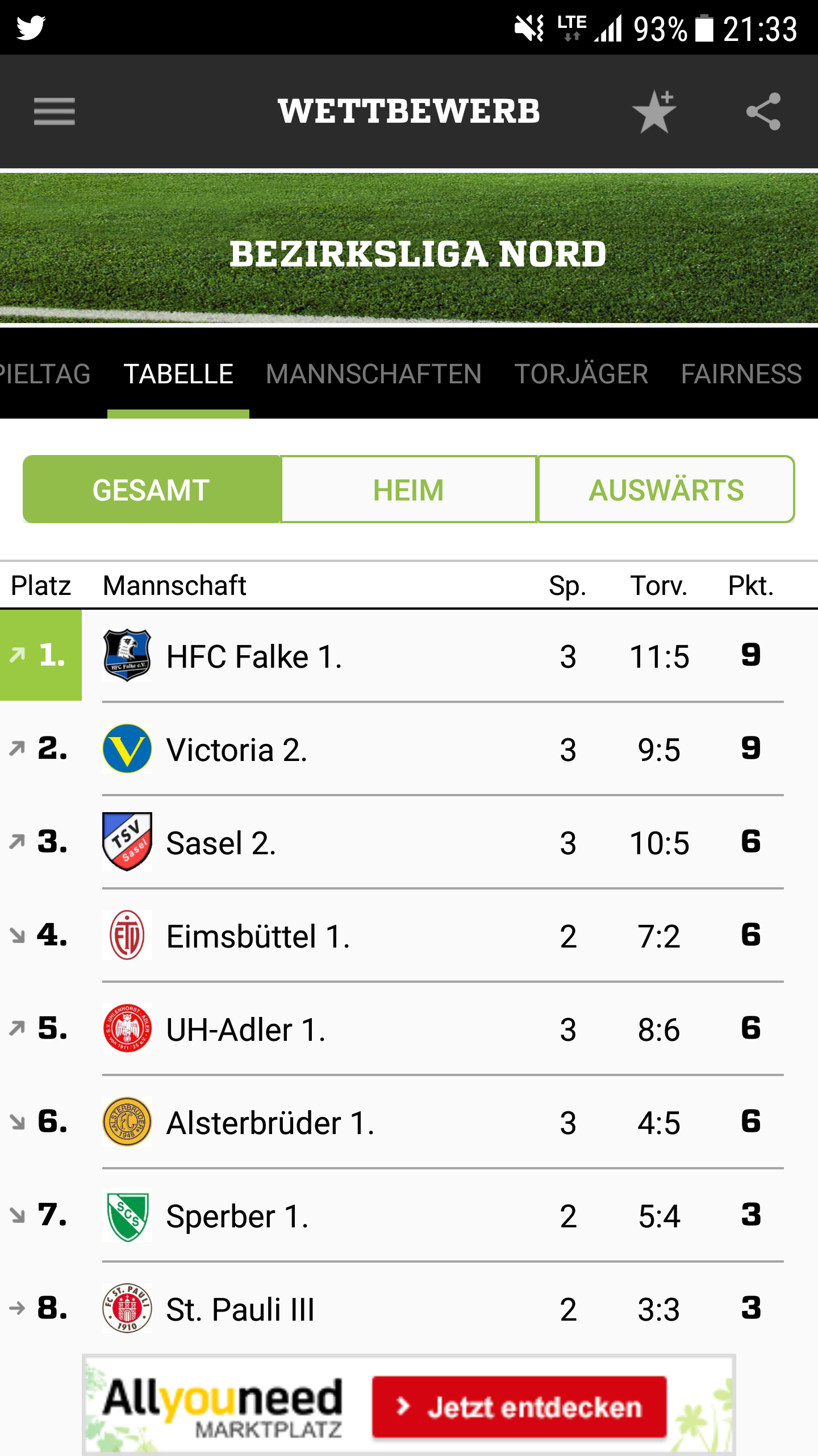 Und Tabellenführung in der Bezirksliga Nord ist dann auch mal so richtig geil.