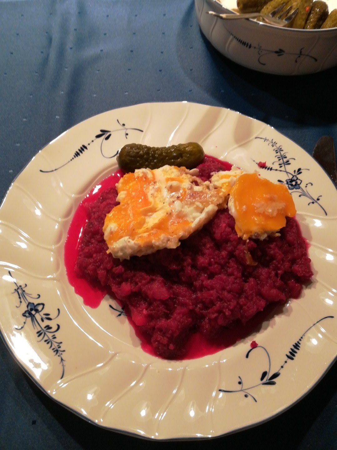Heute war der Familien Labskaus Tag. Gepökelte Rinderbrust, Gewürzgurken, Rote Beete und Zwiebeln werden durch den alten Fleischwolf gedreht. Der mit der Handkurbel, da wird das alles gewolft aber eben nicht warm und schnell durch gejagt. Das ist sehr beruhigend und macht sehr viel Spaß. Es ist mein viertes oder fünftes Labskaus, jedes Mal schmeckte es anders. Nächstes Jahr mache ich es wieder und es wird anders und wieder besser.