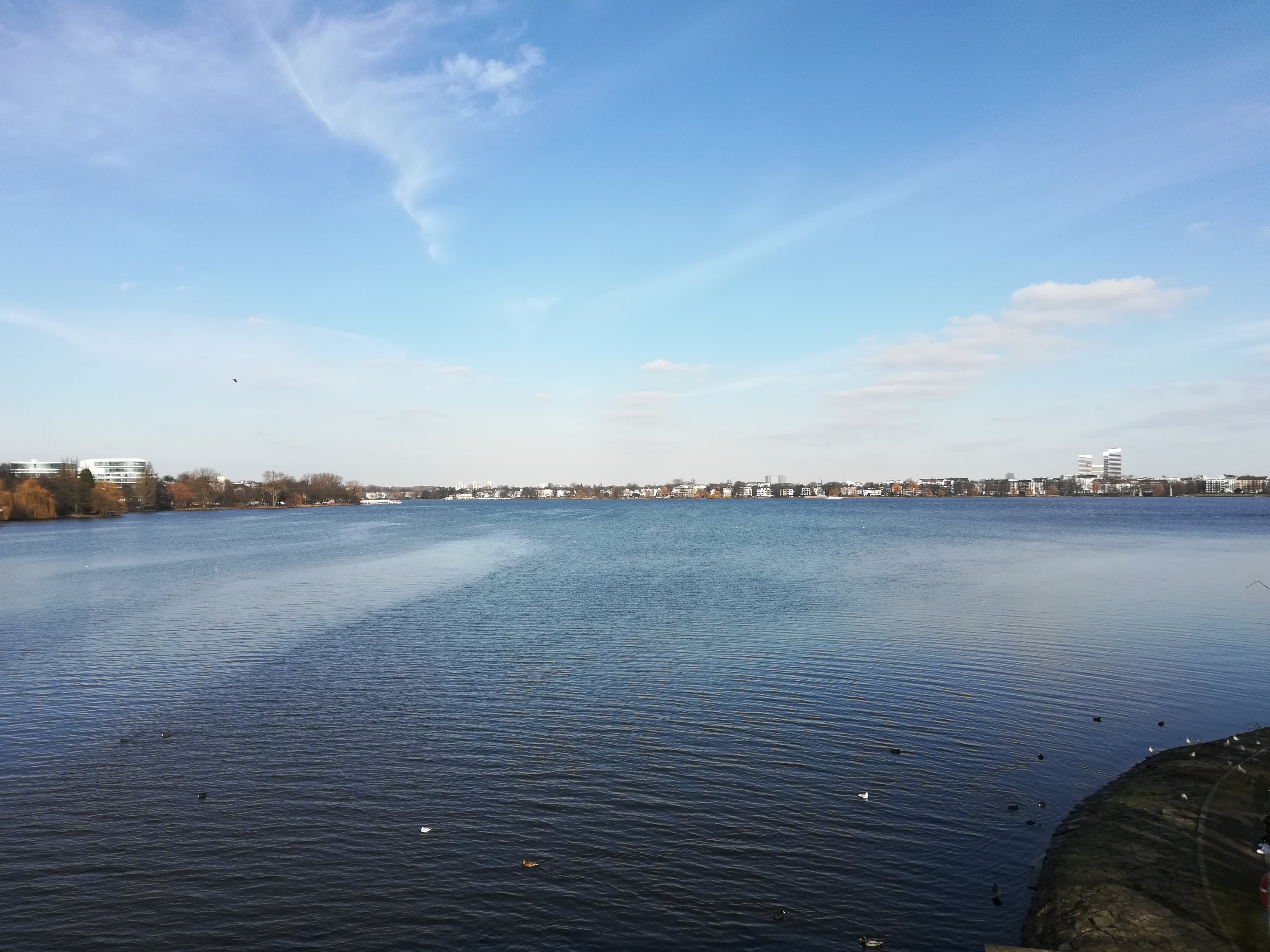Also sind wir einmal um die Alster rum. Bei tollem Wetter ist das echt toll, aber wir beide haben festgestellt, dass die Elbe besser ist.