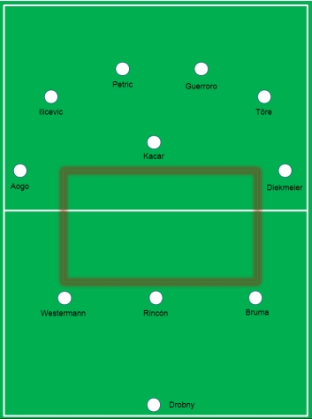 Wir spielen mit 2 defensiven und 2 manchmal drei offensiven Mittelfeldspielern. Defensiv hat sich das Tandem Tomas Rincón und Gojko Kacar etabliert. Tesche und auch Skjelbred dürfen als Ergänzung immer mal ran.